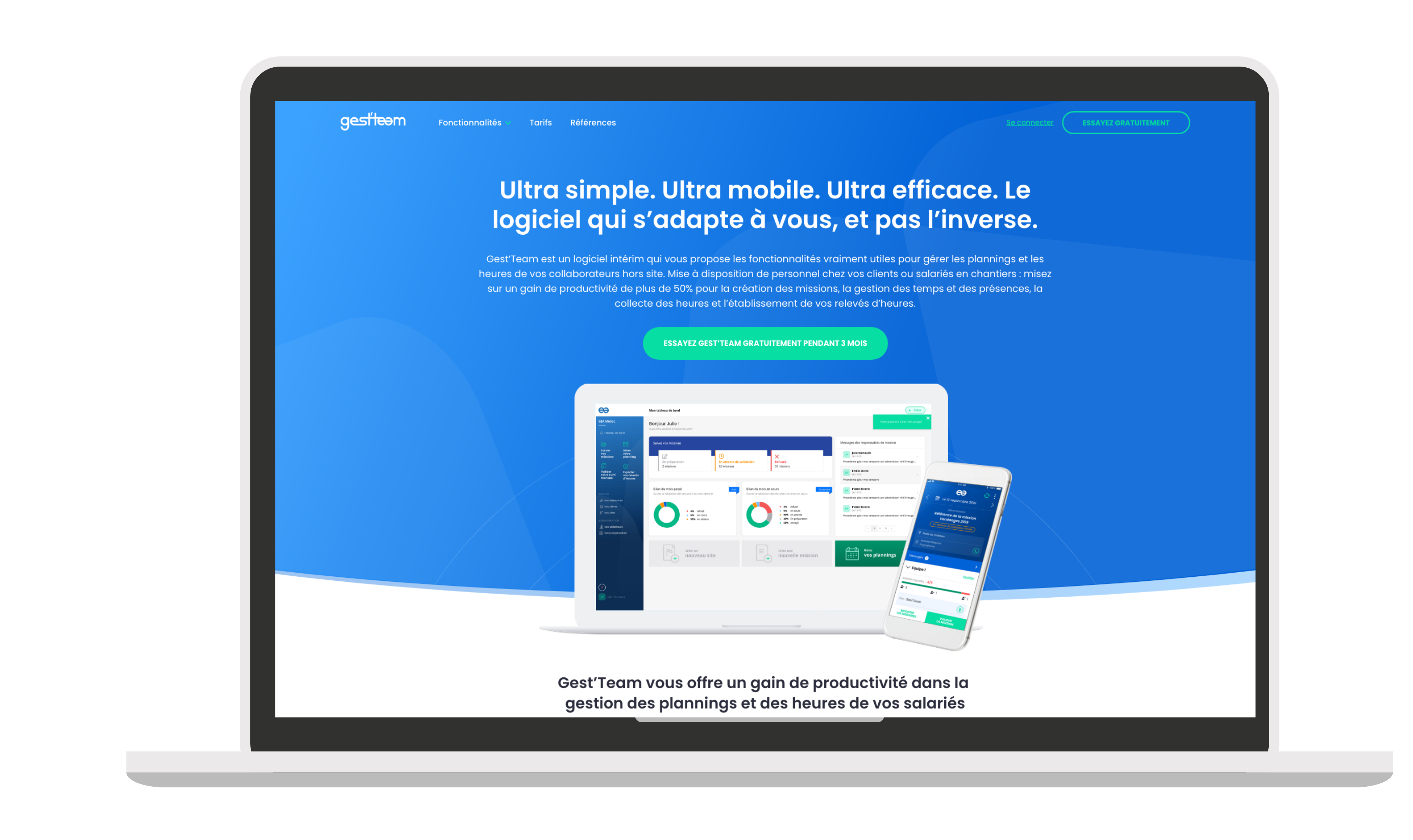 Après nous avoir confié la réalisation d'une application métier à destination des Groupements d’Employeurs de la viticulture, Gest'Team a souhaité aller plus loin en créant une plateforme SaaS ouverte à toutes les entreprises qui gèrent des personnels déployés sur le terrain avec planification et relevés de temps de travail.