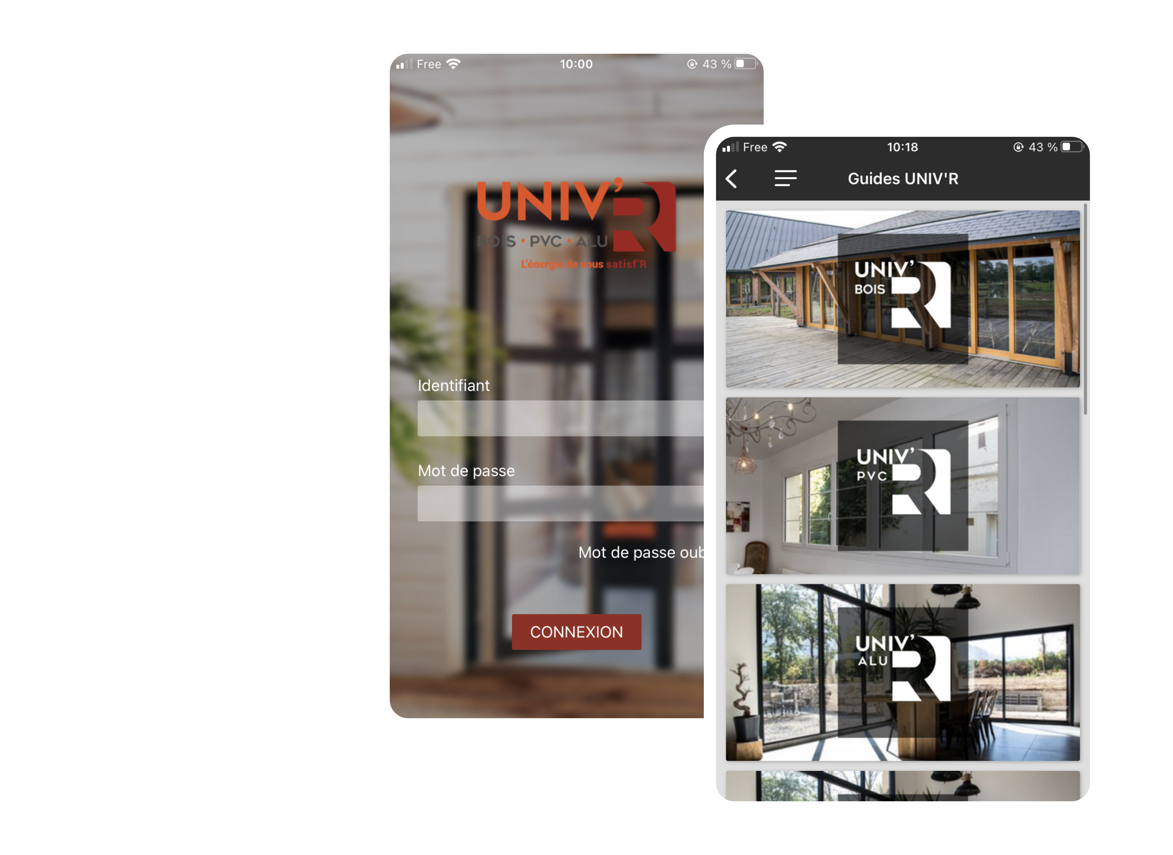 L’application Univ’R Menuiseries répond à cet objectif en transmettant des actualités et informations ciblées par utilisateur (selon la région, le commercial référent, le type de produits vendus, etc.) grâce à notre solution. A tout moment, les utilisateurs peuvent également retrouver la documentation commerciale et technique de leur marque, ainsi qu’un espace personnalisé dans lequel Univ’R met à disposition des documents personnels (devis, factures, contrats, etc.).